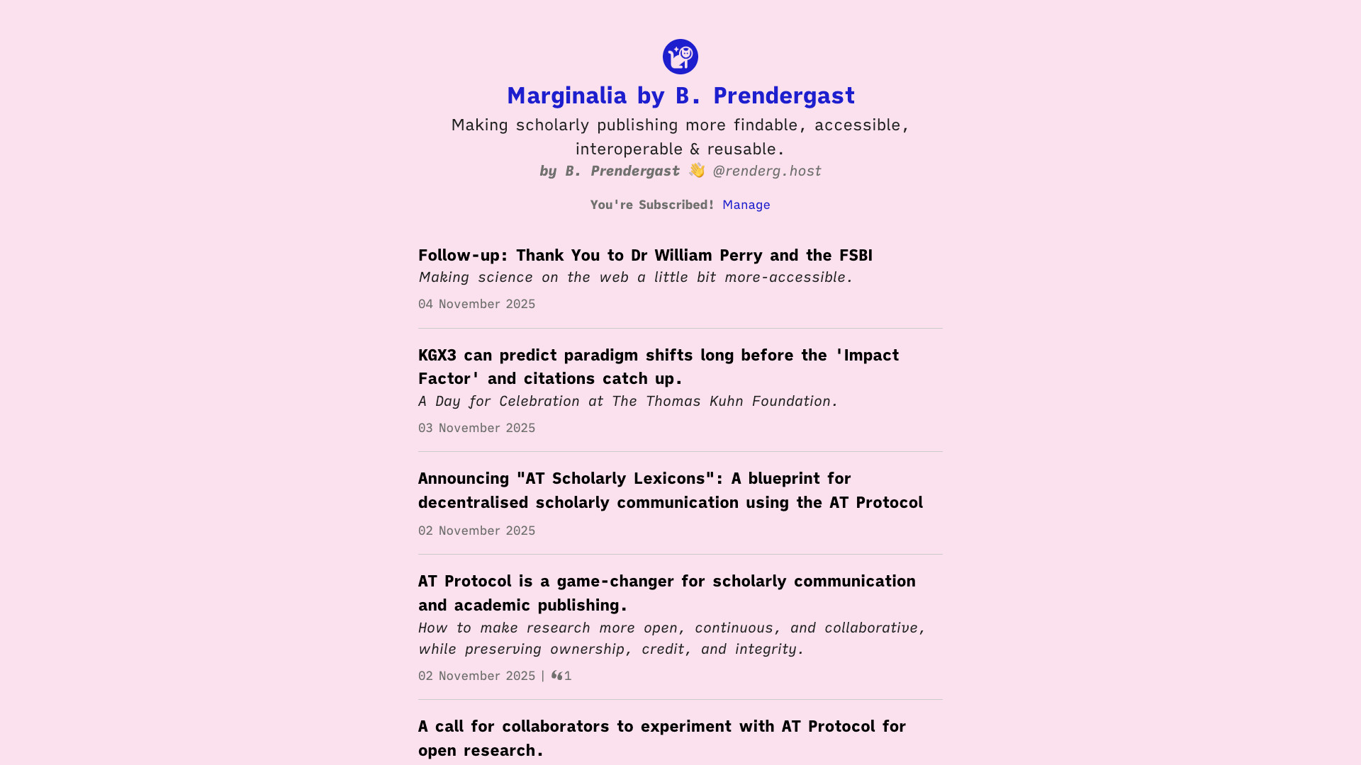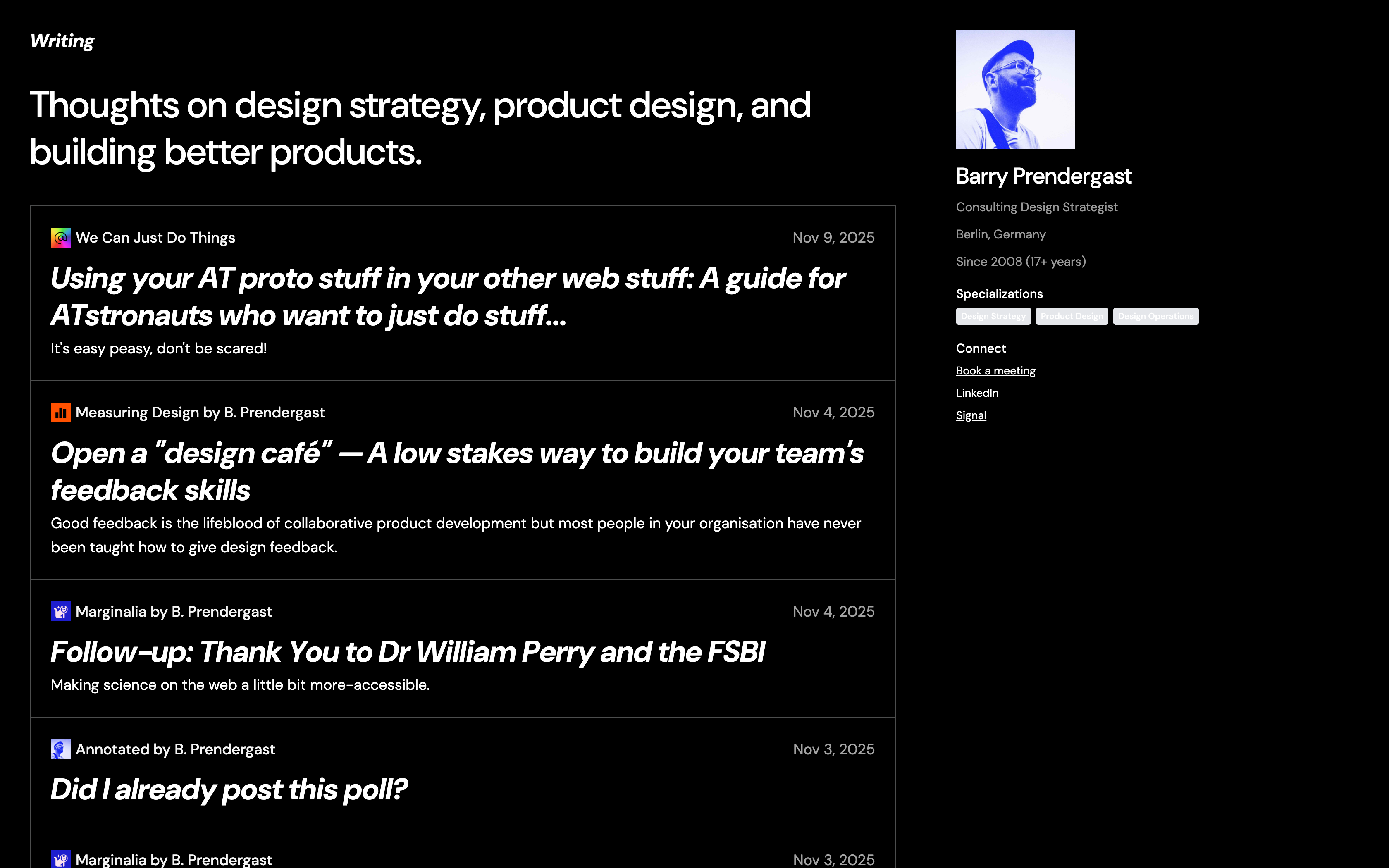A screenshot of my Leaflet publication called "Marginalia" with a selection of posts.
